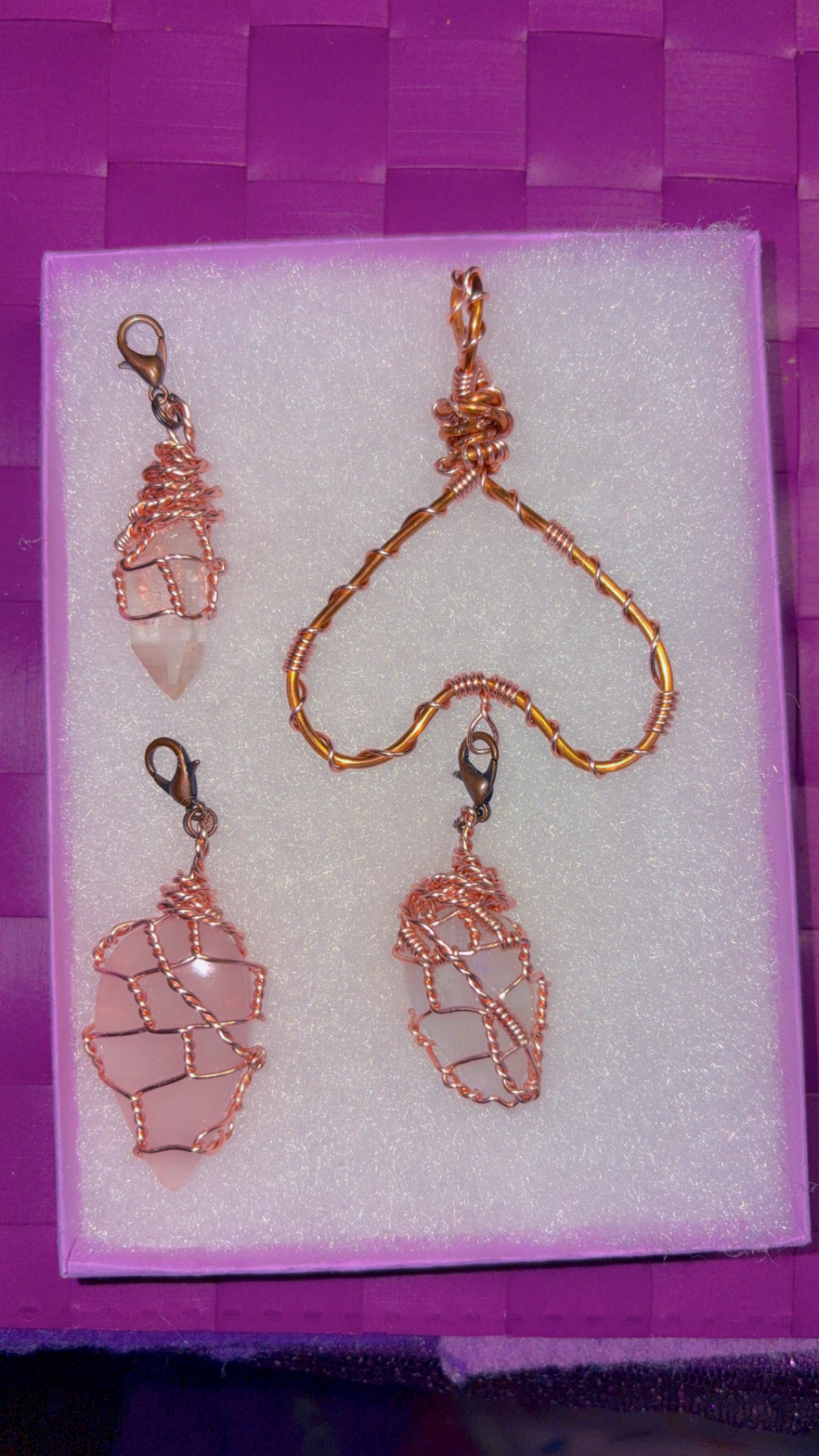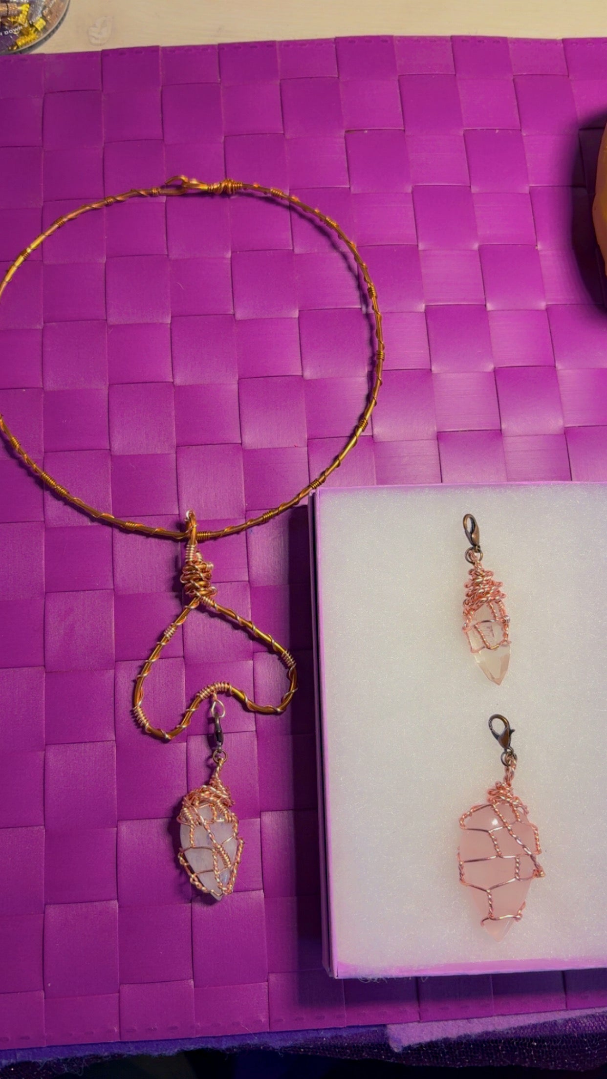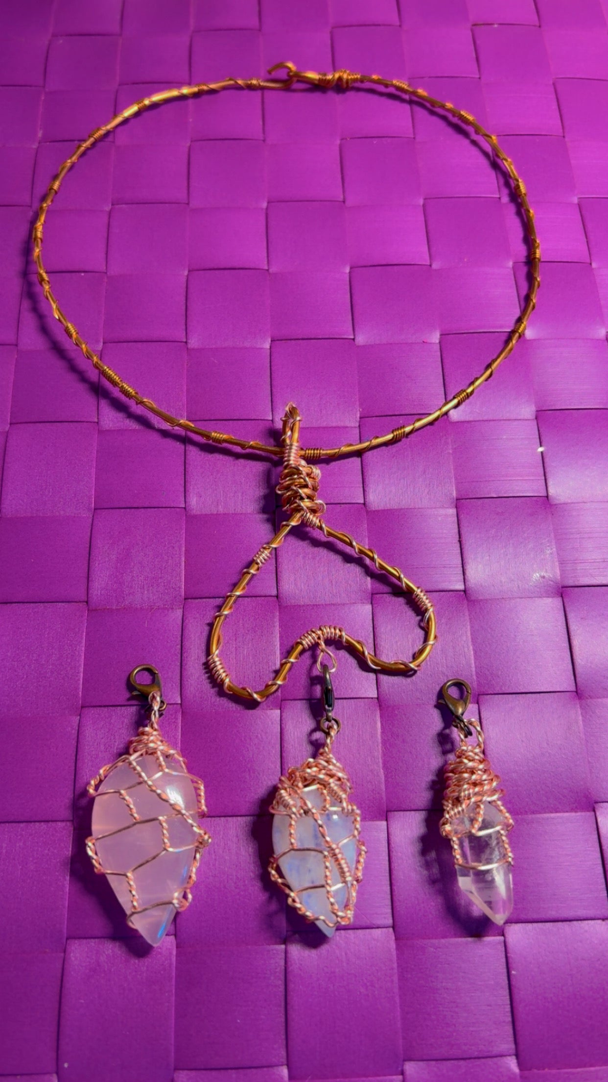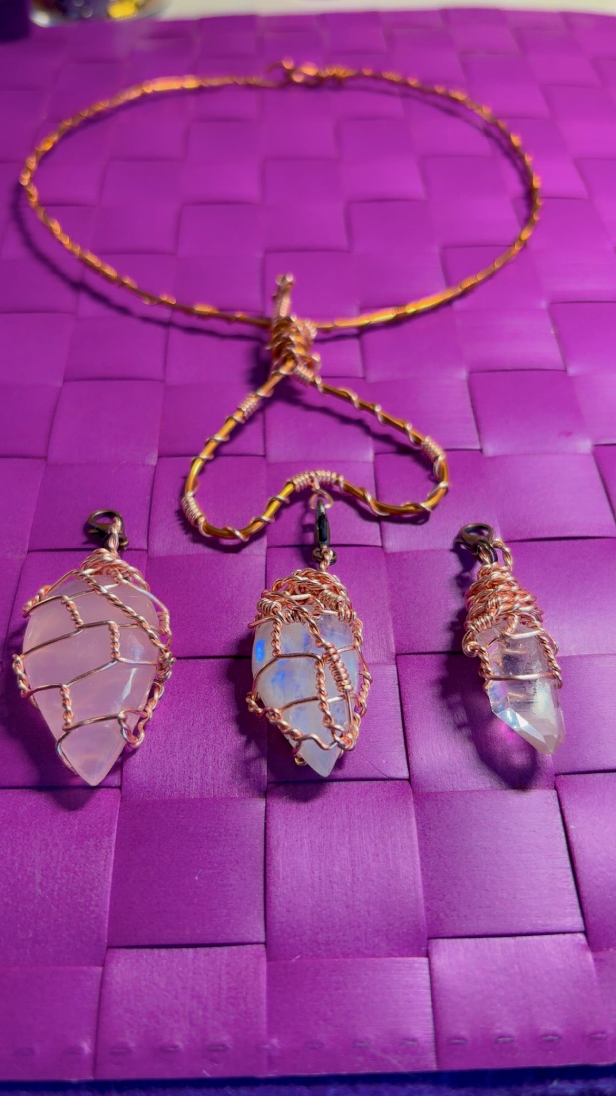 Clickable Charm Necklace (with Rose Quartz, Moonstone and Clear Quartz Pendants)